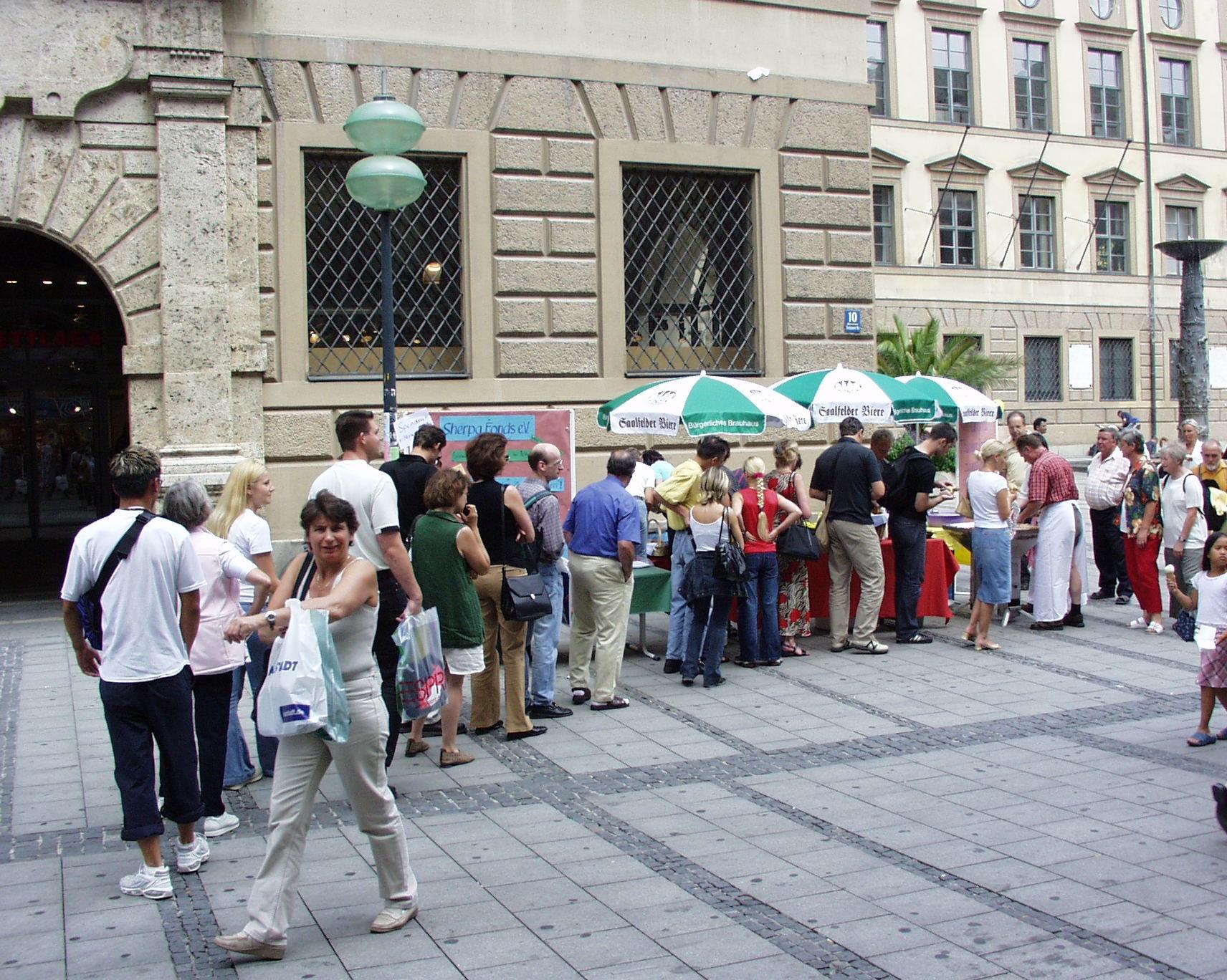 Die Thüringer Bratwürste fanden großen Anklang bei den Passanten der Münchner Fußgängerzone. Der Erlös ging an den Sherpafonds e.V.