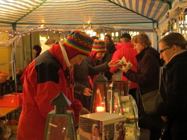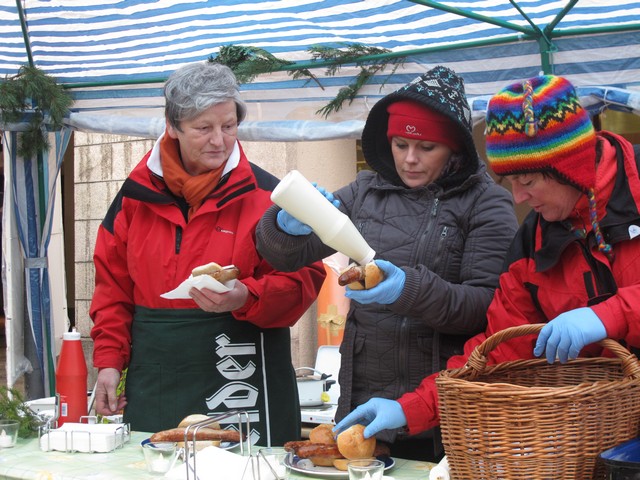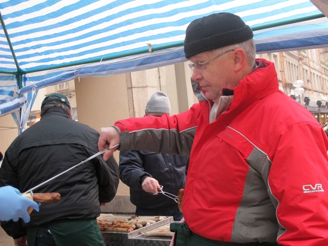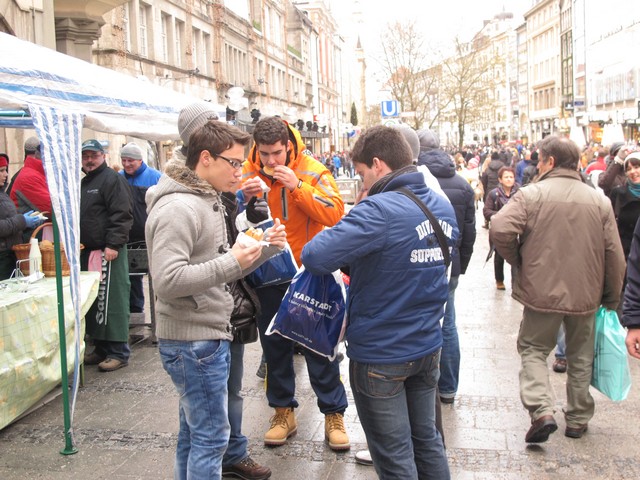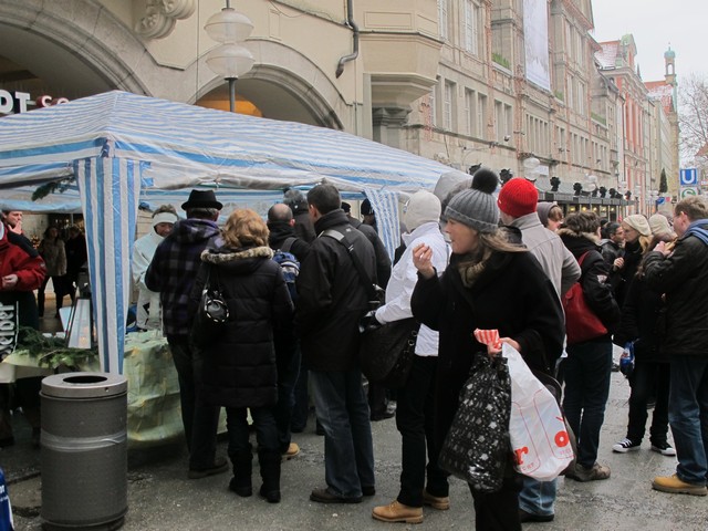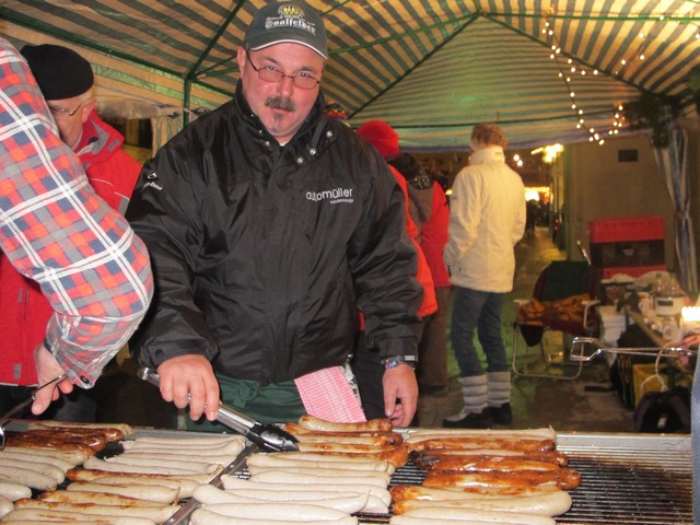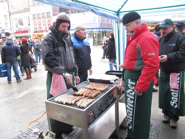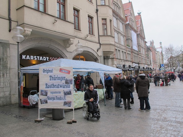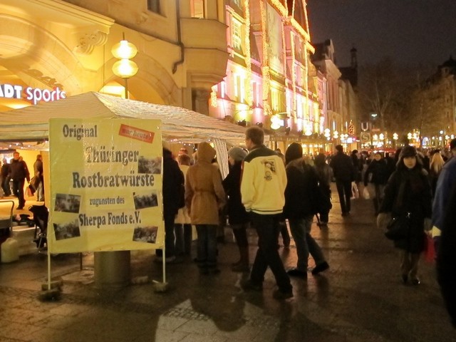 Großer Beliebtheit erfreuten sich wieder Thüringer Bratwürste, dieses Jahr erstmalig auf dem Münchner Christkindlmarkt. Den Erlös bekommt der Sherpa Fonds e.V. für Schulkinder in Nepal.